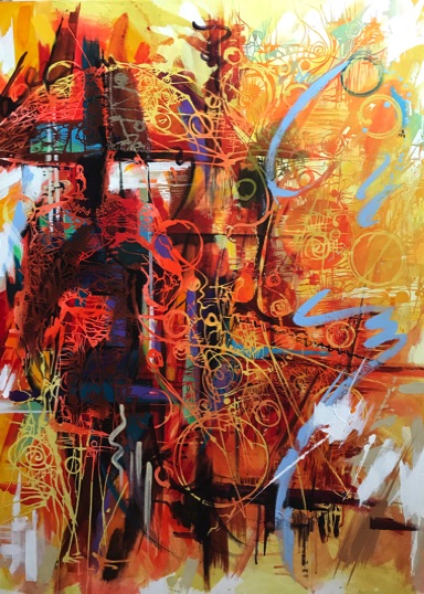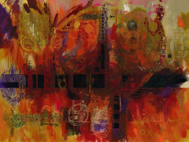 Acrylic and mixed-media combining the use of Remoglue on canvas