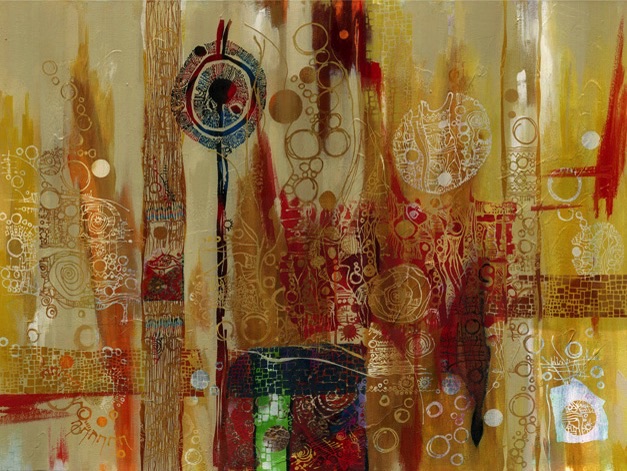 Acrylic and mixed-media with Remoglue on canvas H36" by W48"